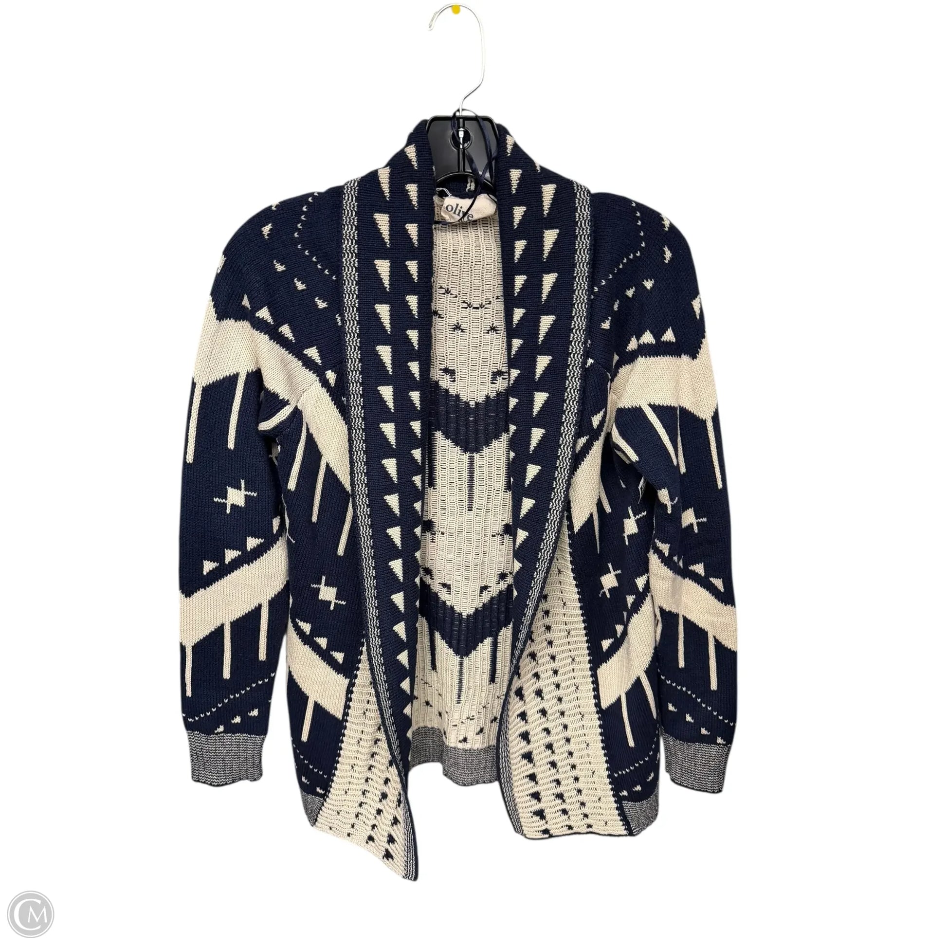 Sweater Cardigan By Olive And Oak In Blue & Cream, Size: S