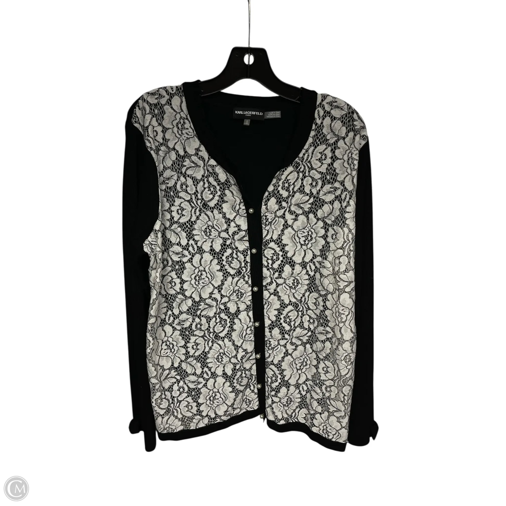 Sweater Cardigan Designer By Karl Lagerfeld In Black & White, Size: Xl