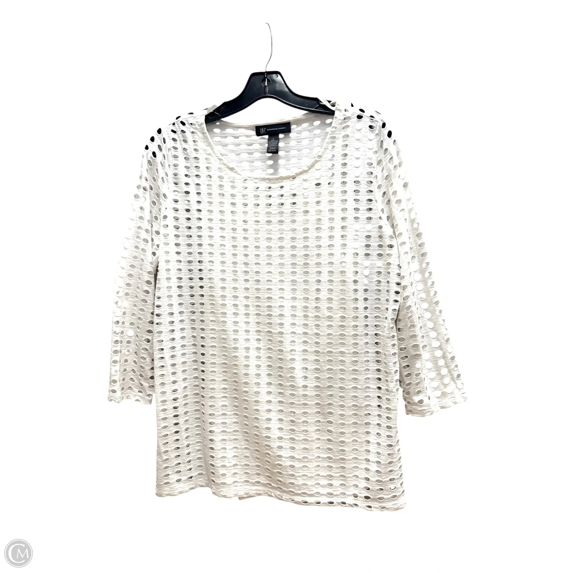 Indulge in chic sophistication with this White Top by Inc. Luxurious 3/4 sleeves in size L for an elegant statement.
