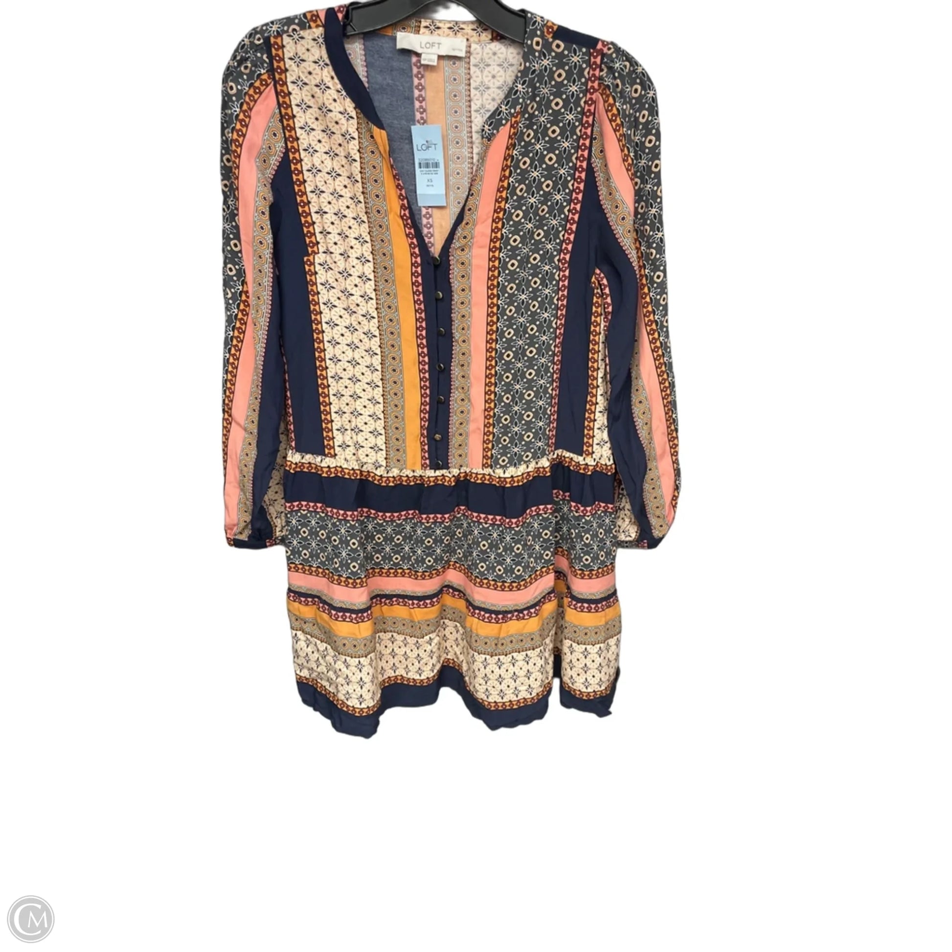 Tunic Long Sleeve By Loft In Blue & Cream, Size: Xsp