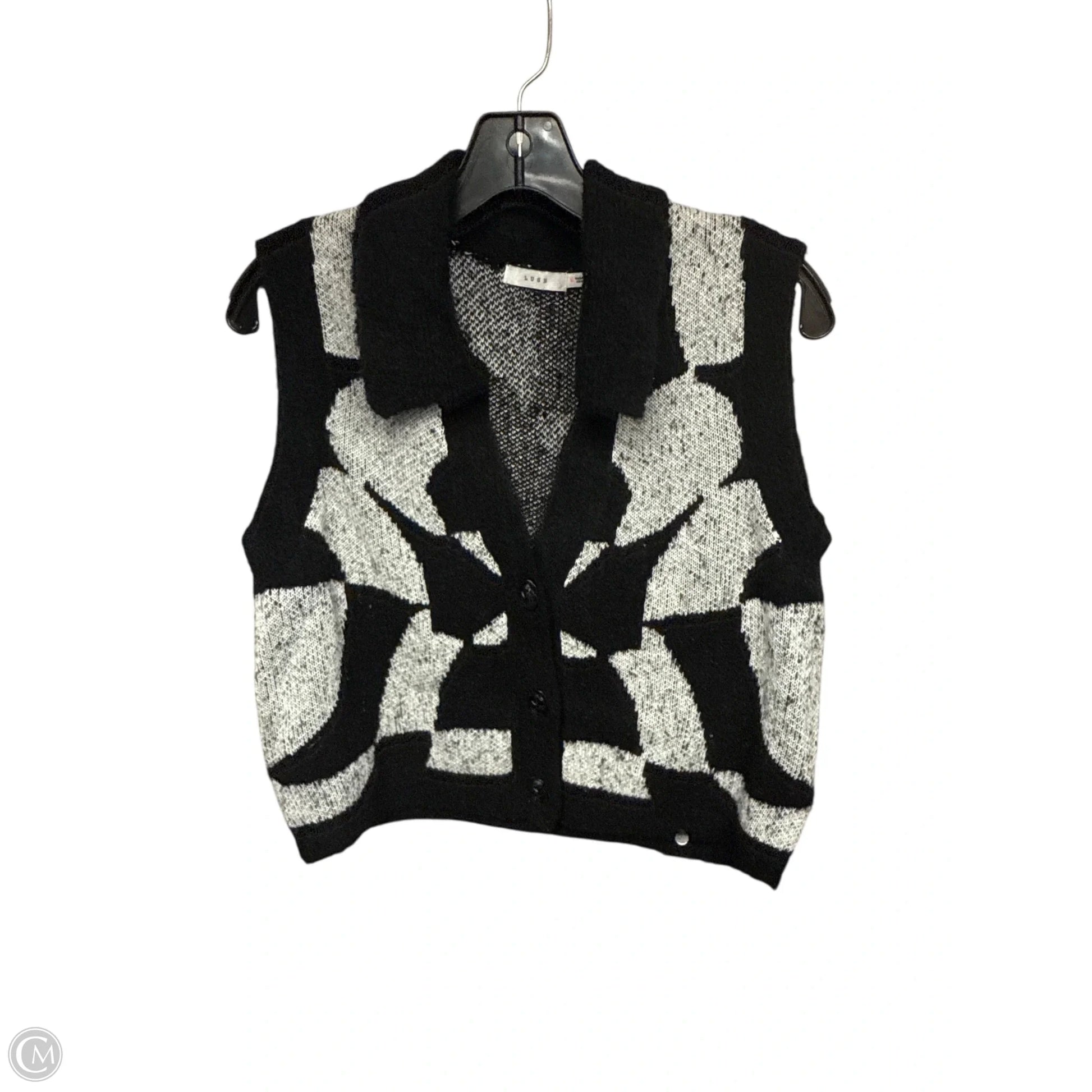 Vest Sweater By Lush In Black & Grey, Size: M